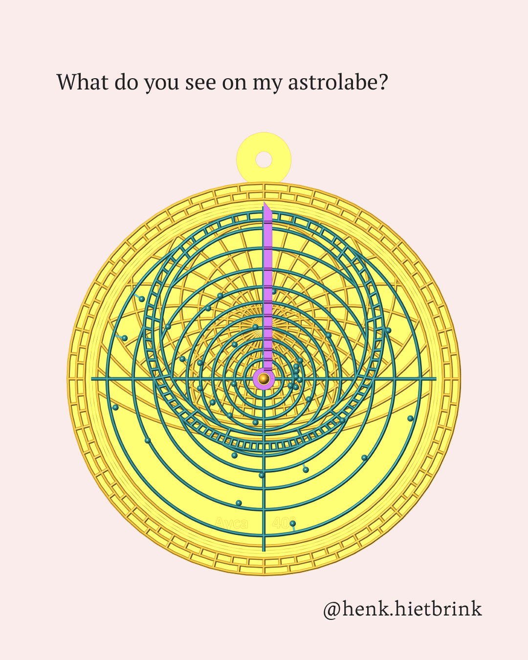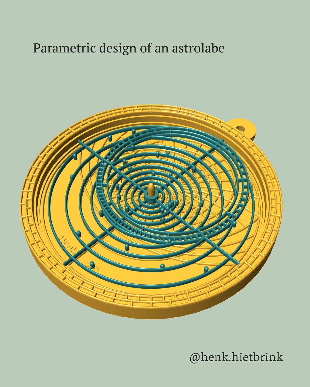 3D printed astrolabeEen 3D print van een astrolabe is beschikbaar voor iedere breedtegraad (en leverbaar in iedere kleur).
