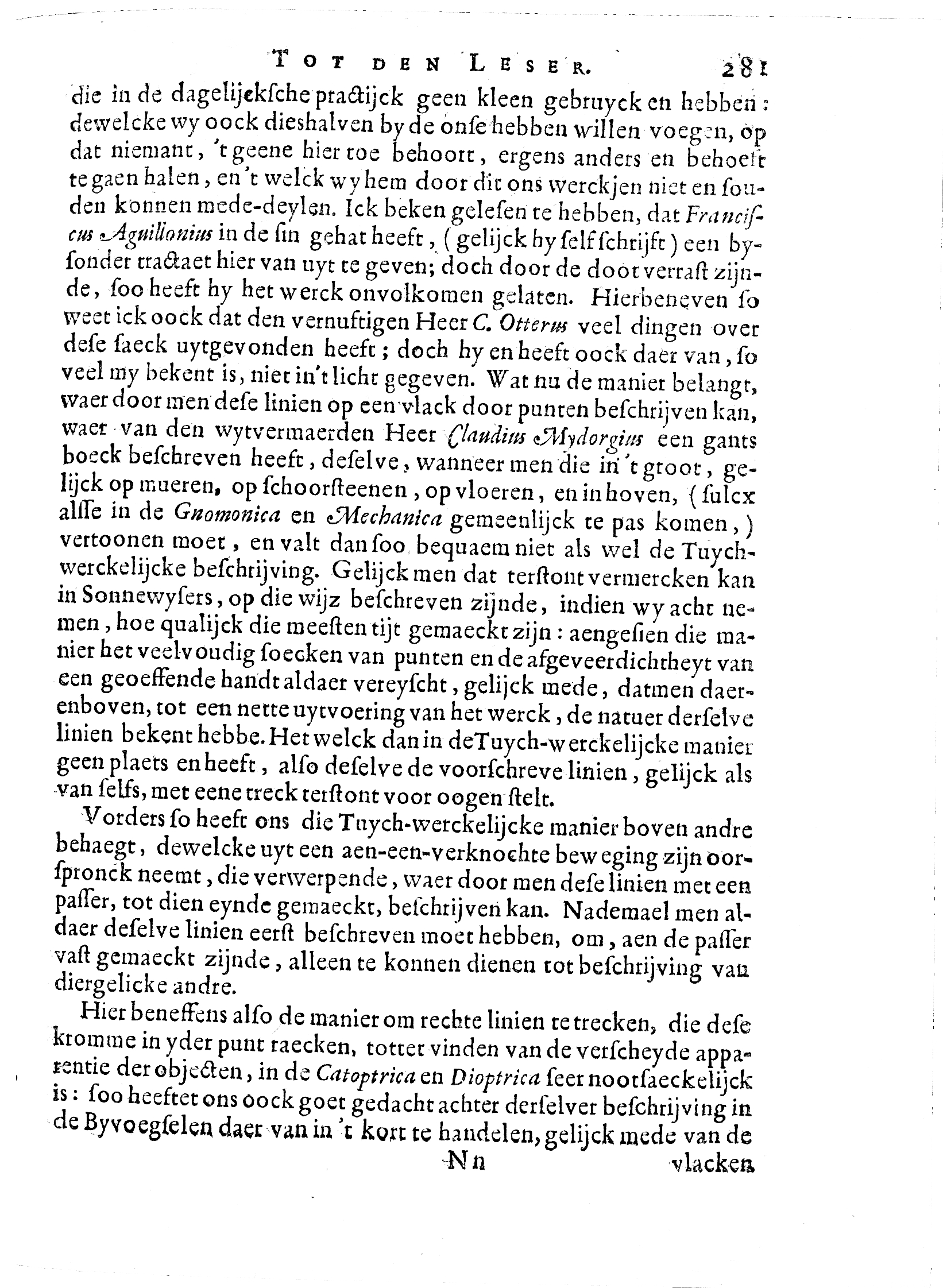 Claude Mydorge (1585-1647) Mydorge, een Fransman, schreef over Optica en kegelsneden en vereenvoudigde bewijzen van Apollonius. Hij was een vriend van Descartes en hielp hem bij het maken van lenzen. Gnomonica is de wetenschap die zonnewijzers bestudeert uit wetenschappelijk, astronomisch, en artistiek oogpunt. |