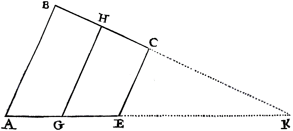 In deze figuur geldt dat EK : EC = GK : GH = AK : AB.