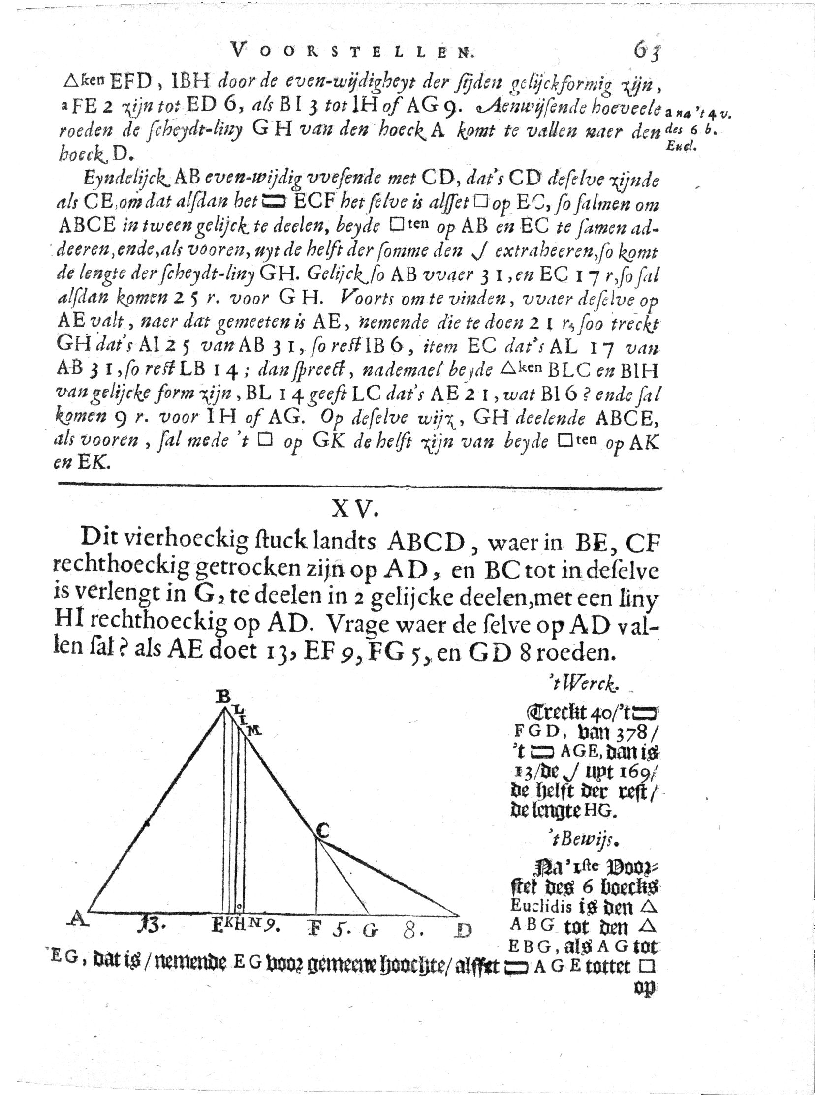 Van een vierhoekig stuk land ABCD zijn op zijde AD de punten E, F, G en D bepaald.