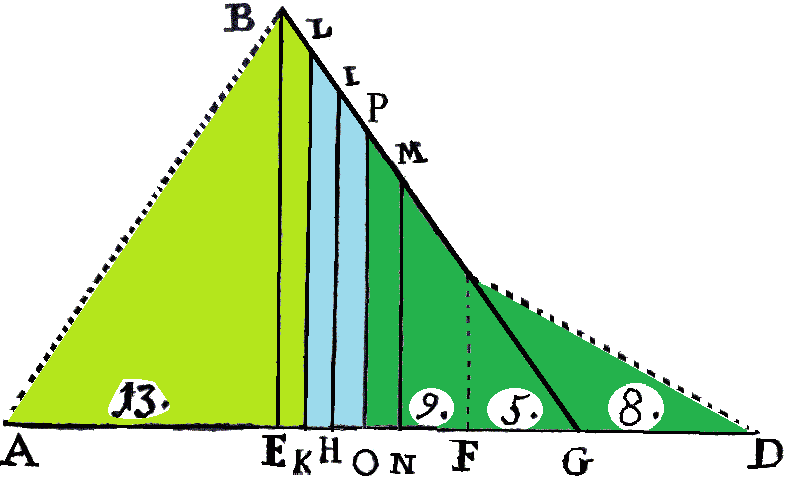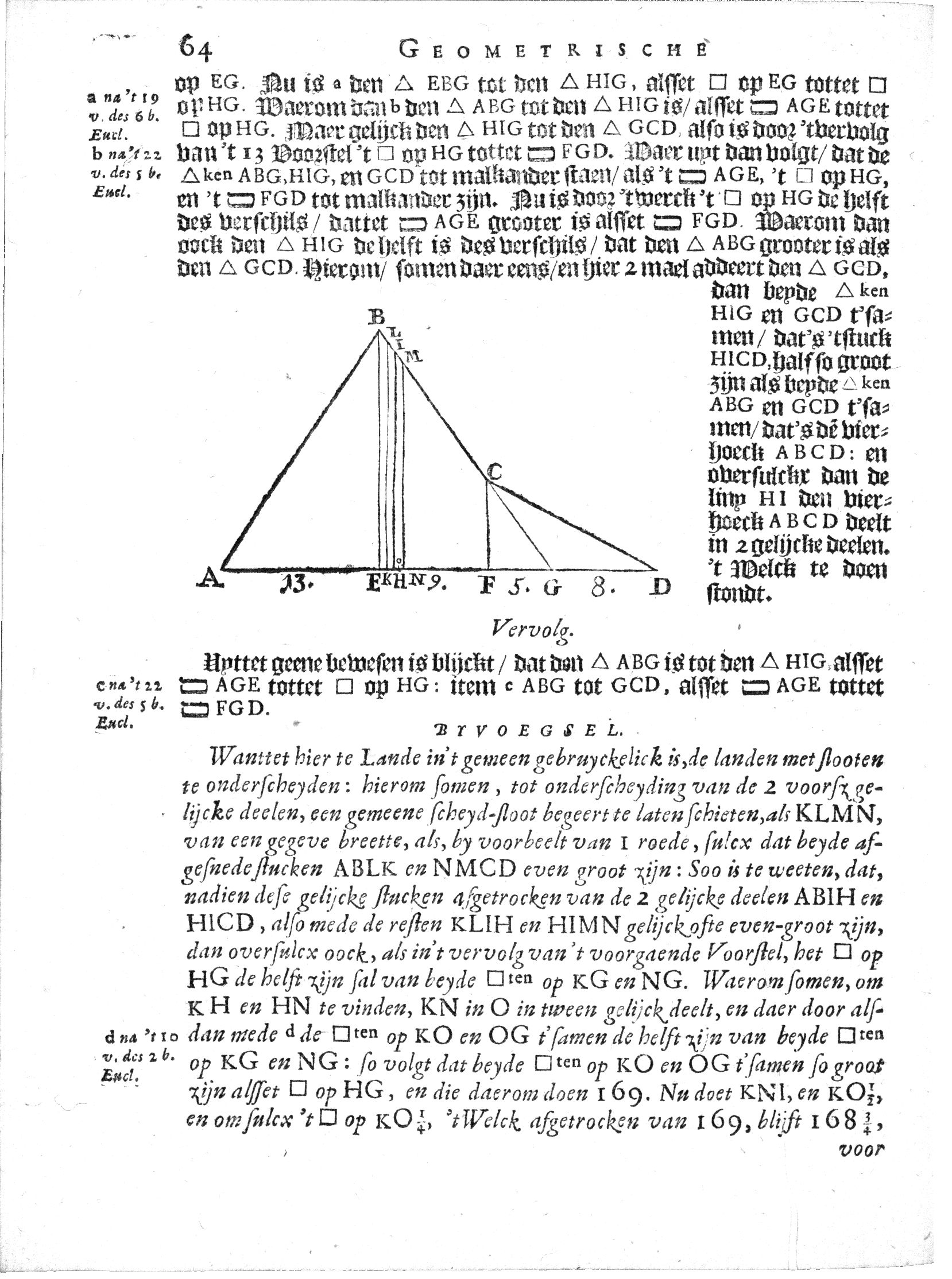 In de buurt van scheidslijn HI komt een sloot KLMN van één roede breed die de vierhoek ABCD verdeelt in twee even grote stukken ABLK en NMCD.