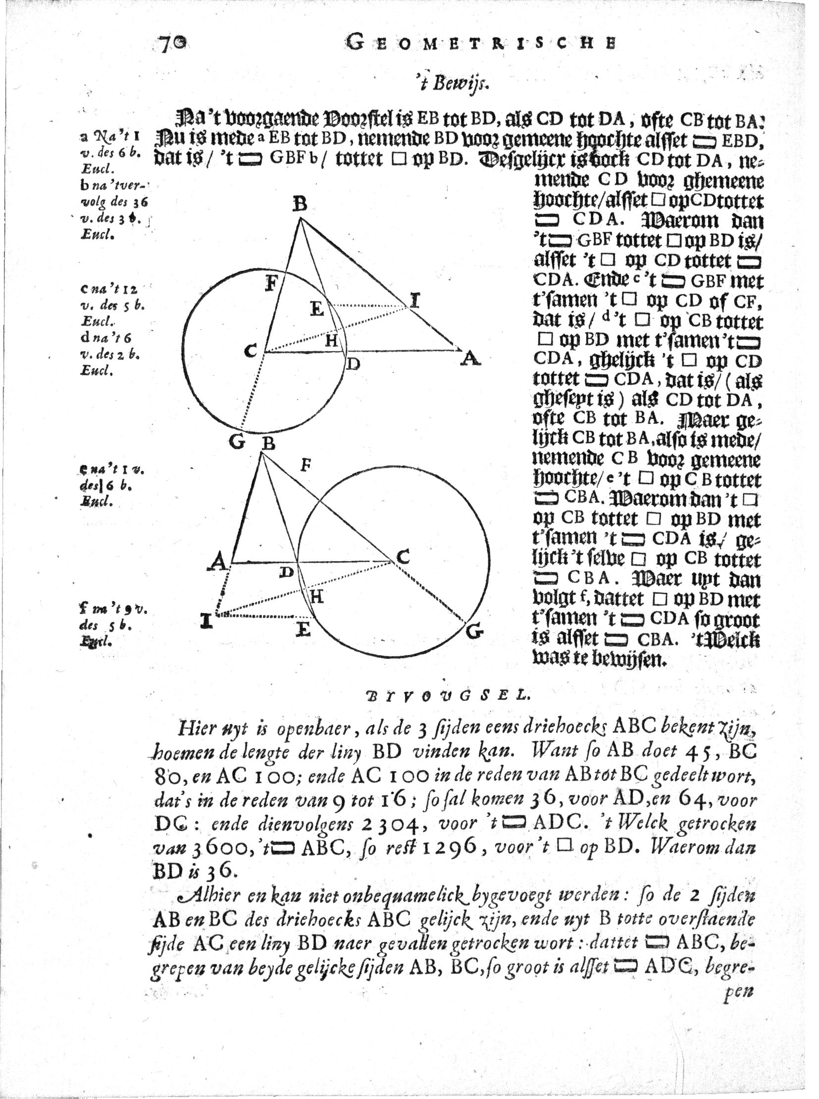 met punt E, het snijpunt van de cirkel met de deellijn BD,