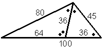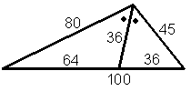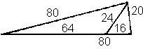 Deze driehoek is beslist niet op schaal. Volgens propositie 3, zesde boek van Euclides, deelt een bissectrice van een driehoek de overstaande zijden in stukken die zich verhouden als de zijden die de hoek insluiten. De overstaande is 80 lang en de zijden zijn 80 en 20. De overstaande is in de verhouding 80 : 20 verdeeld in 64 en 16. Met de stelling van Stewart is de lengte van de deellijn uitgerekend. Die is inderdaad exact 24.