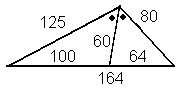 Volgens propositie 3, zesde boek van Euclides, is een lijn die de overstaande zijde in twee stukken deelt die zich verhouden als de aanliggende zijden een deellijn Omdat 125 : 80 = 100 : 64 is de tophoek inderdaad in twee gelijke hoeken gedeeld. Met de stelling van Stewart is de lengte van de deellijn uitgerekend. Die is inderdaad exact 60.