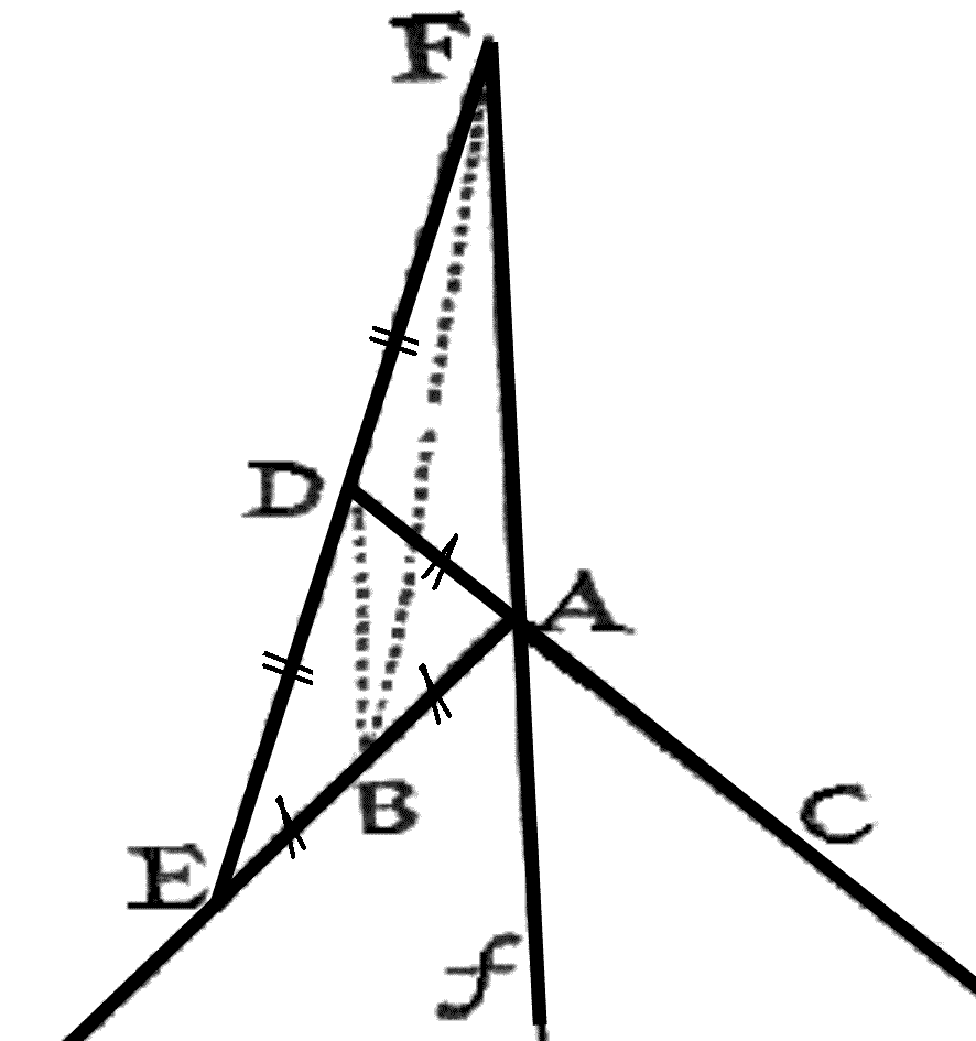 Frans van Schooten concludeerde daarom dat lijn AF hoek BAC in twee even grote hoeken deelde.