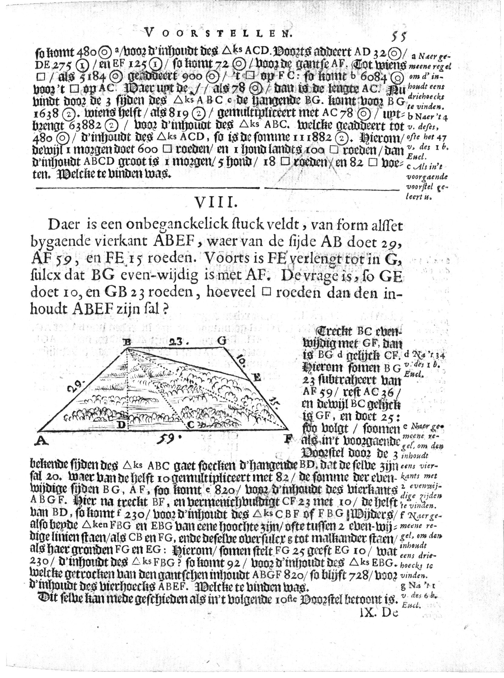 Volgens de landmeter weet je met deze gegevens voldoende om de oppervlakte van dat land te kunnen uitrekenen.