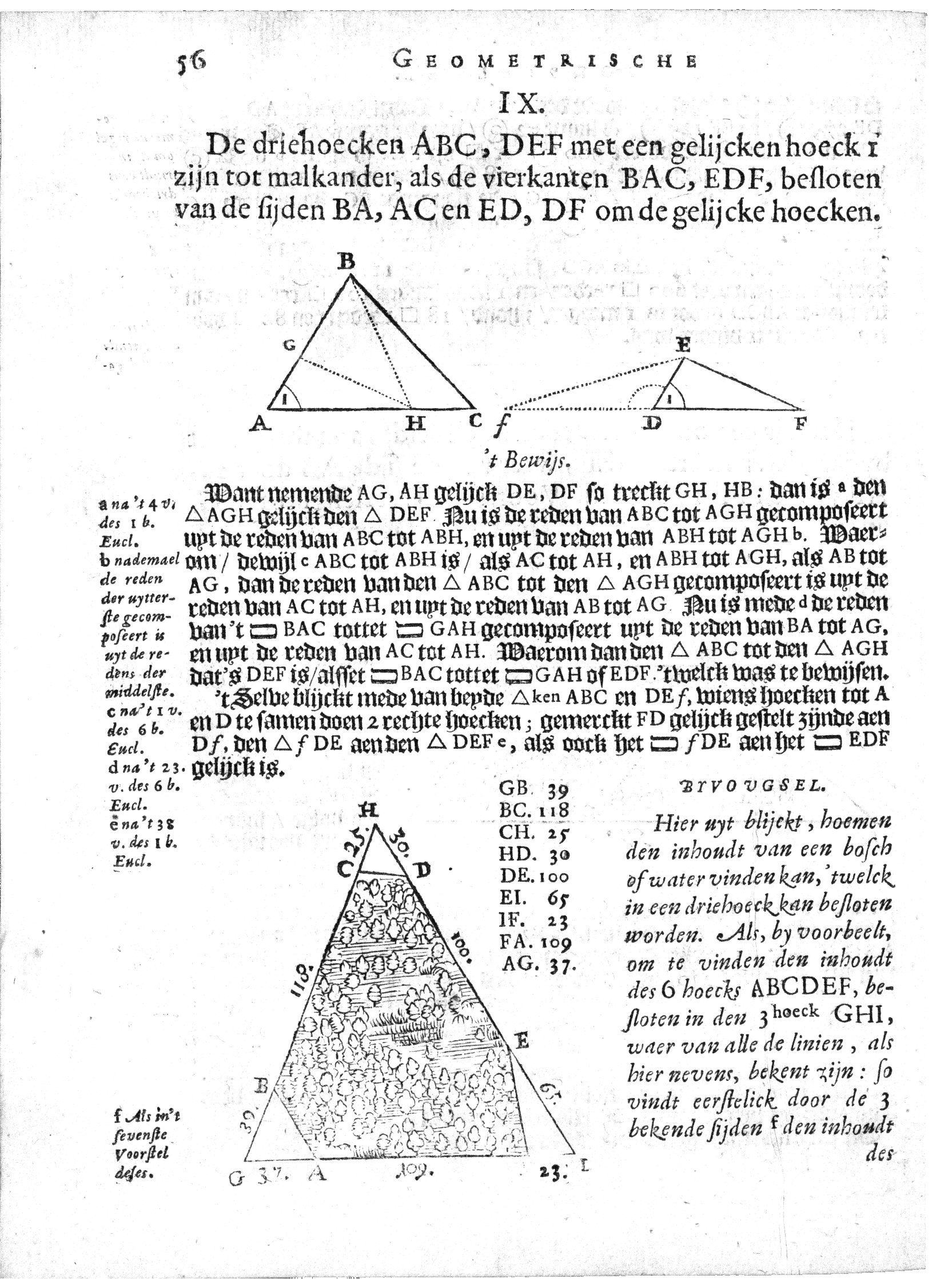 Een zeshoekig stuk land ABCDEF is besloten door een driehoek GHI.