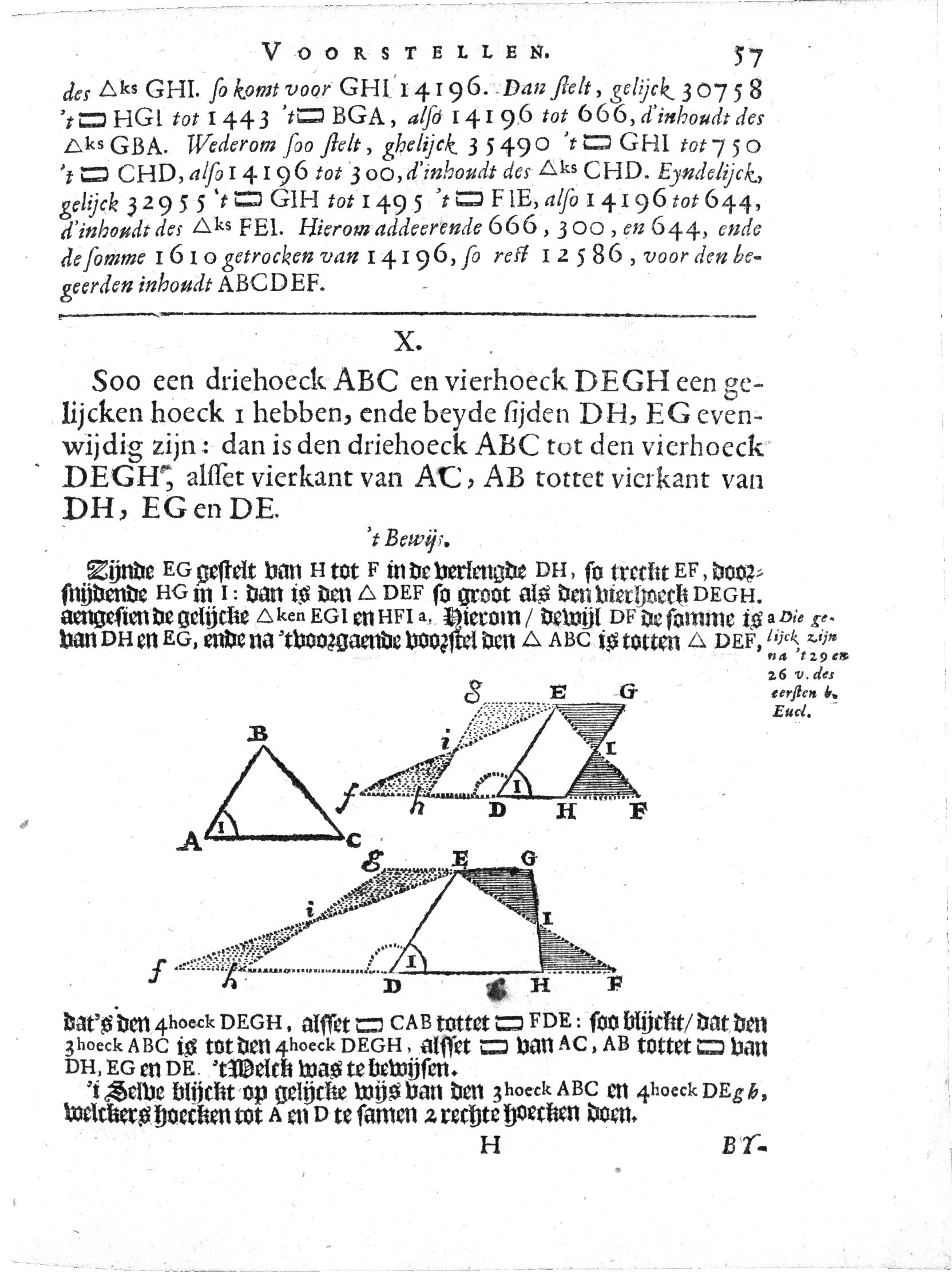 en omdat opp. DEH : opp. EHG = DH : EG,