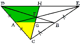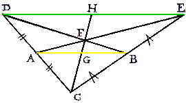 Punt H is het snijpunt van lijn DE met lijn CF. Toon aan dat ∆CDH een vergroting is van ∆CAG en dat de vergrotingsfactor precies 2 is.