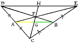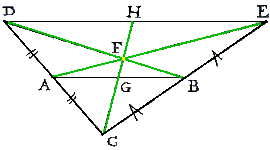 Toon aan dat punt F het zwaartepunt is van ∆CDE en dat dus lijn CF ook een zwaartelijn is.