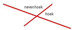 In ∆ABC is ∠A de hoek die ingesloten is door zijde AB en zijde AC. Hoek A heet daarom de ingesloten hoek. Hoek B heet de binnenhoek en hoek B' heet de buitenhoek. |