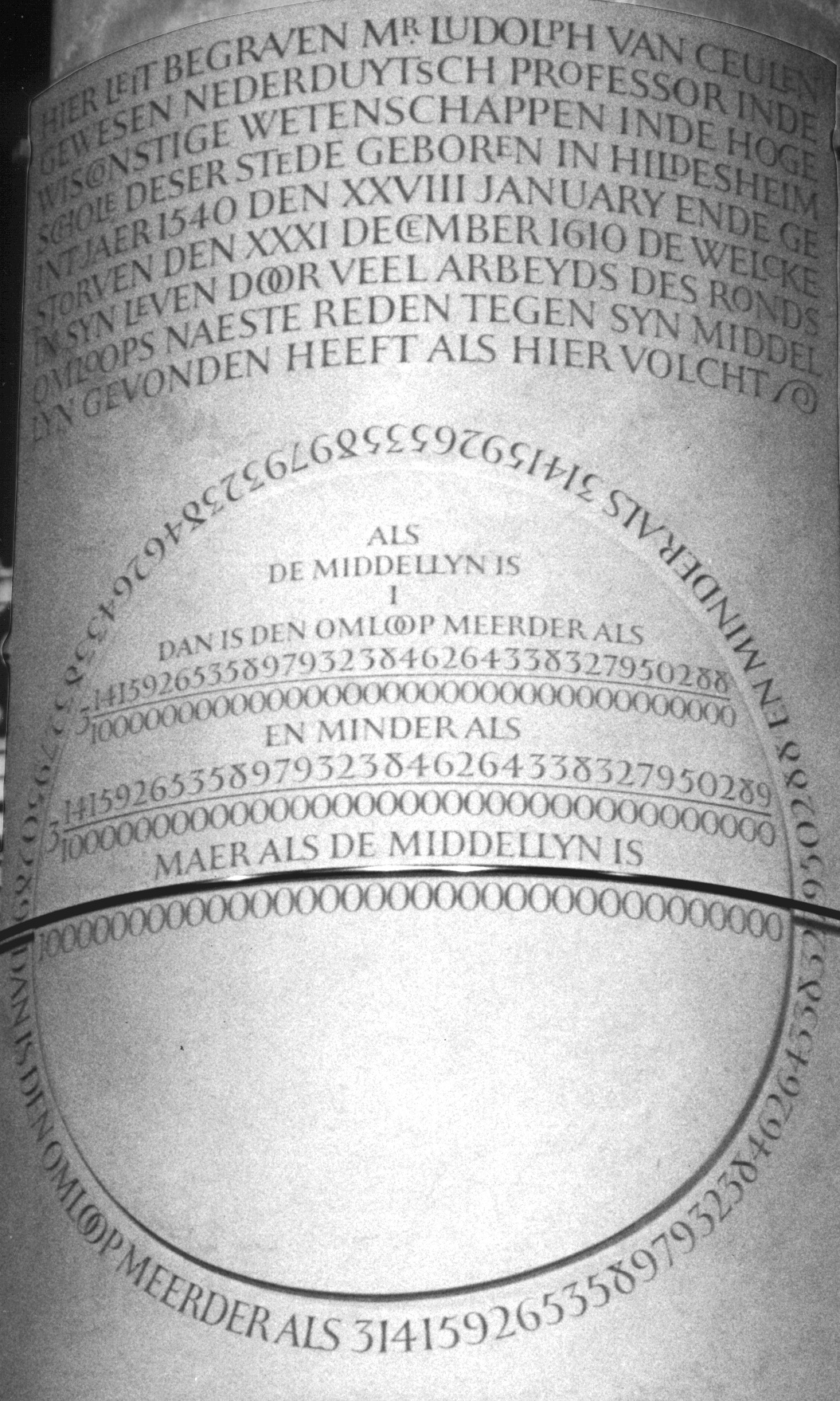 Mensen berekenden het getal π tot in veel decimalen achter de komma. Ludolf van Ceulen heeft 35 decimalen van het getal π uitgerekend. Die stonden gebeiteld op zijn graf in de Pieterskerk in Leiden. Het oorspronkelijke graf is verdwenen. Nu is er een monument. Praktisch gezien heb je nooit 35 decimalen nodig. De afstand van de aarde naar de zon is 150 miljoen kilometer. Uitgedrukt in millimeters is dat een getal van 15 cijfers: dat betekent dat je nog 20 cijfers achter de komma moet zetten om een nauwkeurigheid van 35 decimalen te bereiken. Kegelsneden Kegelsneden waren in die tijd een boeiend onderwerp. Ook nu is het onderdeel van het wiskunde B programma. Een kegel is een wiskundige figuur. Als je een kegel horizontaal doorsnijdt, krijg je een cirkel en een hyperbool als je die verticaal doorsnijdt. Als je een kegel schuin doorsnijdt, krijg je afhankelijk van de hoek een ellips of een parabool. Kegelsneden kom je overal tegen. Planeten hebben ellipsvormige banen om de zon, satellietschotels hebben een parabolische vorm, beschuitbussen zijn cirkelvormig, het schijnsel van een lamp op een muur is hyperbolisch.