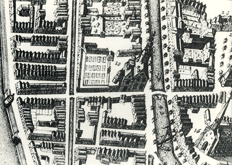 Vermaeckelijckheden En in die Kercke, waer de Engelsche nu predicken, in dit Bagijne-Hoff, worden alle dagen, behalven 'sWoensdaeghs en Saterdaeghs van elf tot twaelf uuren, openbare Lessen gedaen inde Neerlandsche Tael, in de Mathematische Konsten tot gerief van alle ongeletterden, als Metselaers, Timmer-luyden, en diergelijcke meer; die haer dan met hoopen in die tijdt hier vinden; sonder mantels, maer met hare stocken, en schootsvellen, etc. versien; dat dan seer kluchtigh om sien is. Den professor, die duytsche lessen voor haer doet, evenwel in sijnen gewoonlijcken aensienlijcken Professors- Tabbaert, ofte Rock (soo wel als alle de andere Latijnsche Professoren de hare doen), is den Hoogh-geleerden, en Wijdt-vermaerden D. Franciscus van Schooten'. Bron: J. de Parival, De Vermaeckelijckheden van Hollandt, Oostendorp, Amsterdam, 1661