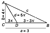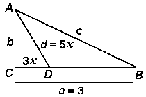 Gezocht wordt naar geheeltallige driehoeken waarvan een geheeltallige deellijn de overstaande zijde in twee geheeltallige stukken deelt.
