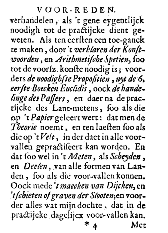 En dat soo wel in't Meten, als Scheyden, en Deelen, van alle formen van Landen, soo als die voor-vallen konnen.